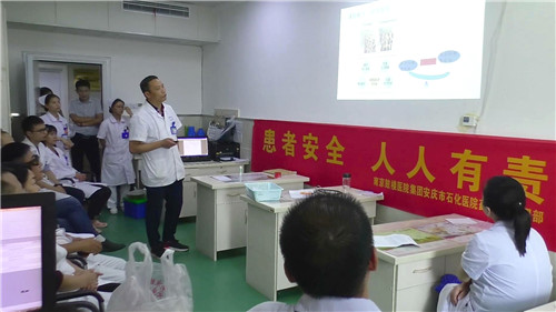 9月10日至20日活動期間,藥劑科主任劉會前帶領(lǐng)本科室業(yè)務(wù)骨干,與臨床科室、護(hù)理部等合作,開展安全用藥等專題講座,利用慢病糖尿病宣講日與患者面對面進(jìn)行溝通交流,提供合理用藥咨詢服務(wù)。通過教師節(jié)進(jìn)學(xué)校、門診宣傳咨詢、與內(nèi)分泌科共同培訓(xùn)、周末進(jìn)社區(qū)、分發(fā)宣傳材料等一系列具體活動,普及安全用藥知識。藥劑科主任劉會前、內(nèi)分泌科主任王安的授課實(shí)用且精彩;普外科操海寶副主任、放射介入科楊龍林副主任也加入月山月形社區(qū)衛(wèi)生服務(wù)站科普宣傳,擴(kuò)大了社會影響。