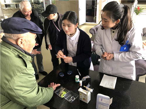 這支志愿者小分隊是由一群朝氣蓬勃的90后醫(yī)護(hù)組成,他們來自臨床一線的各個科室,利用自己的休息時間參與志愿活動,用他們的專業(yè)為老人們測血糖、量血壓、做簡單的康復(fù)訓(xùn)練以及指導(dǎo)日常飲食。