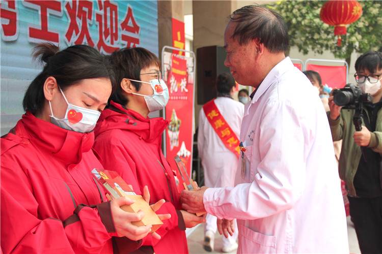 “你們頑強拼搏、奮勇向前,彰顯了石醫(yī)人的仁愛情懷、奉獻精神和良好形象。你們是我們的榜樣!”陳書記代表醫(yī)院致祝賀凱旋詞。