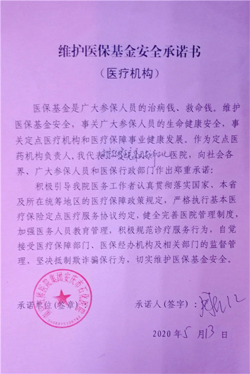 現(xiàn)場,周院長還代表醫(yī)院與醫(yī)療保障局基金監(jiān)管科副主任周美萍、科主任代表汪念東、護士長代表彭鳳艷簽訂《維護醫(yī)?;鸢踩兄Z書》,自覺接受醫(yī)療保障部門、醫(yī)保經(jīng)辦機構等的監(jiān)督管理,堅決抵制欺詐騙保行為,切實維護醫(yī)?;鸢踩?/span>