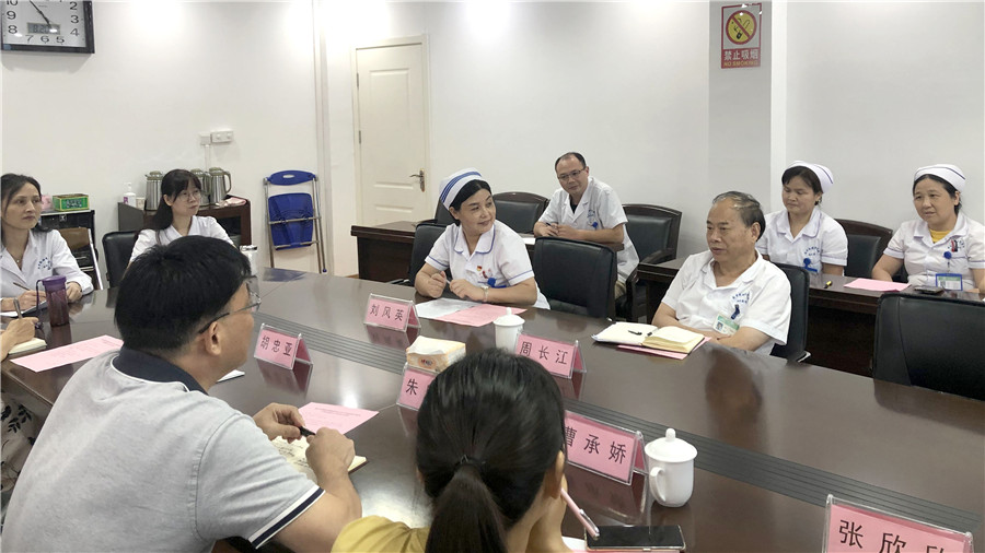 8月20日下午,安慶醫(yī)藥高等??茖W(xué)校副校長朱慶豐一行來院調(diào)研雙主體教改班工作。院長周長江、護(hù)理部主任劉風(fēng)英及教改班輔導(dǎo)員、各護(hù)理教研組組長參加會議。