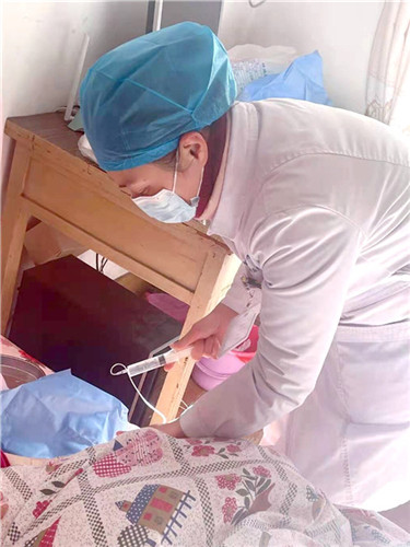 任女士前不久剛進行了免疫治療聯(lián)合靶向治療,期間藥物副反應(yīng)較大。但因家中有事無人陪護,并未完成后期規(guī)律監(jiān)測治療,便提前出院回家休養(yǎng)。1月13日上午,床位醫(yī)生胡麗娜在電話隨訪中了解到,任女士近期出現(xiàn)了便秘、頭暈、惡心嘔吐、全身骨痛等癥狀,身體極為虛弱,不便按期來院行PICC置管換藥??浦魅乌w成和護士長張林妹得知該情況后,立即決定當(dāng)天下午就前往任女士家中。