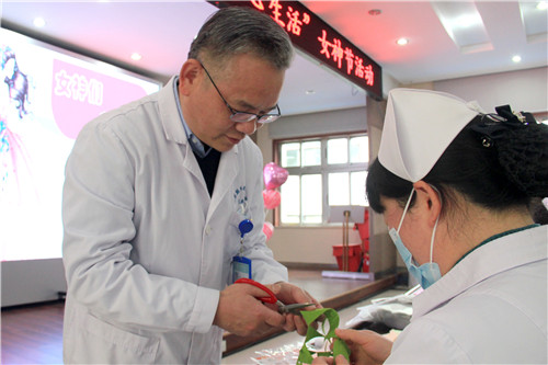 院長(zhǎng)韋寧華特地趕到活動(dòng)現(xiàn)場(chǎng)問候大家。黨委副書記、工會(huì)主席汪文曉親自上陣,用“外科醫(yī)生”的“巧手”助力女職工。