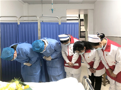 為表達(dá)對捐獻(xiàn)者的敬意,醫(yī)院紅十字會組織志愿者為捐獻(xiàn)者舉行了簡短而莊嚴(yán)的遺體告別儀式,于當(dāng)天下午4點完成眼角膜捐獻(xiàn),晚上9點40分完成遺體捐獻(xiàn)。