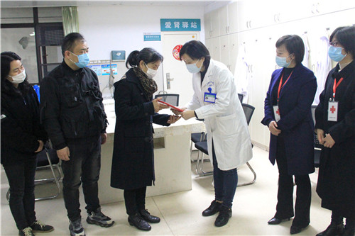 院長韋寧華向捐獻(xiàn)者家屬頒發(fā)捐獻(xiàn)證書
