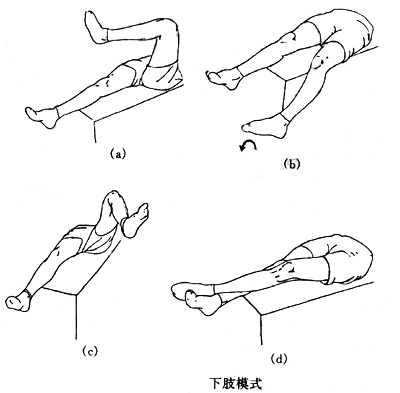 髖關(guān)節(jié):伸、屈、外展45度,內(nèi)收30度,內(nèi)旋及外旋40度