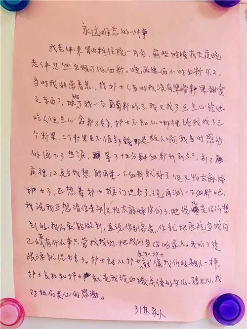 貼心的言行讓患者和家屬看在眼里,記在心上。