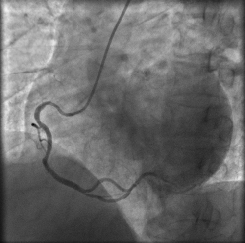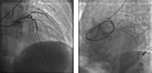 再行右冠造影,右冠近段也嚴重狹窄,未見右冠向左冠的側枝循環(huán)。