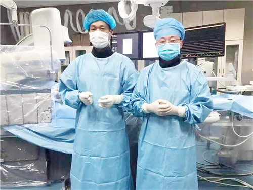 經(jīng)驗(yàn)豐富的放射科楊龍林副主任、王書健副主任為王先生行左下肢動脈造影+球囊擴(kuò)張術(shù)。開通血管后,患者左下肢血流立刻恢復(fù)暢通。