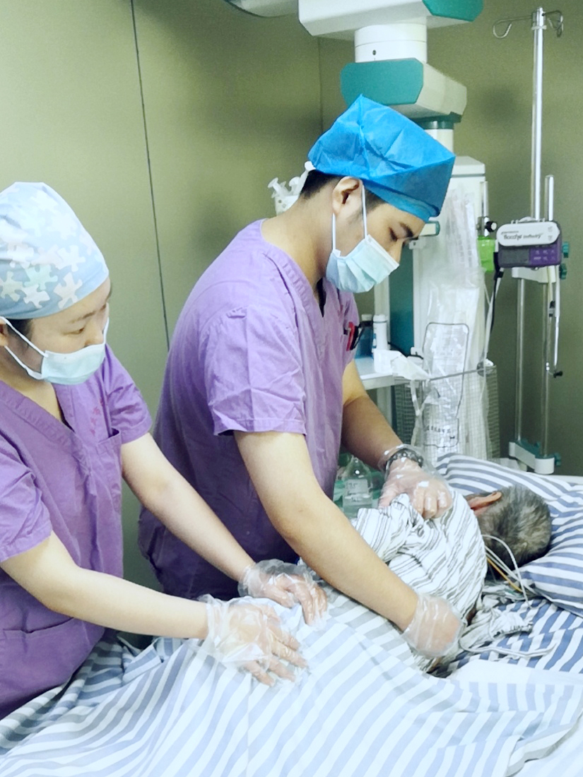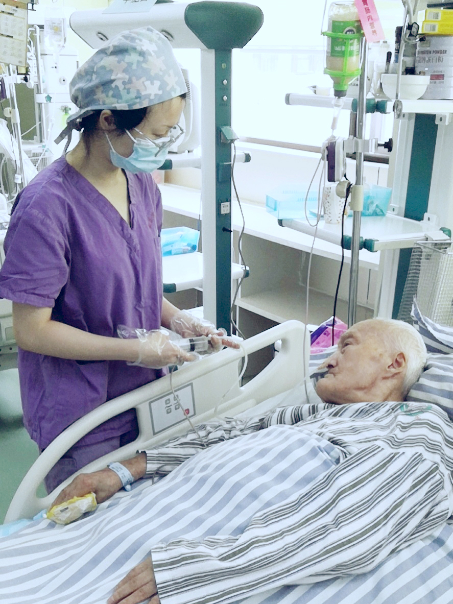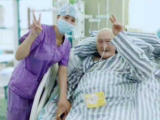 7床的爹爹是ICU里一個(gè)比較特別的患者,九十多歲的高齡,瘦弱的身軀,先后兩次徘徊在死亡的邊緣線,卻從未放棄與病魔抗?fàn)帯K€是ICU公認(rèn)的最“潮”爹爹,最愛的解悶方式就是用手機(jī)看視頻,他樂觀向上的心態(tài)也感染了全科醫(yī)護(hù)人員。在ICU眾人的悉心照護(hù)和鼓勵(lì)下,他積極配合治療,始終堅(jiān)強(qiáng)面對(duì),病情逐漸穩(wěn)定。