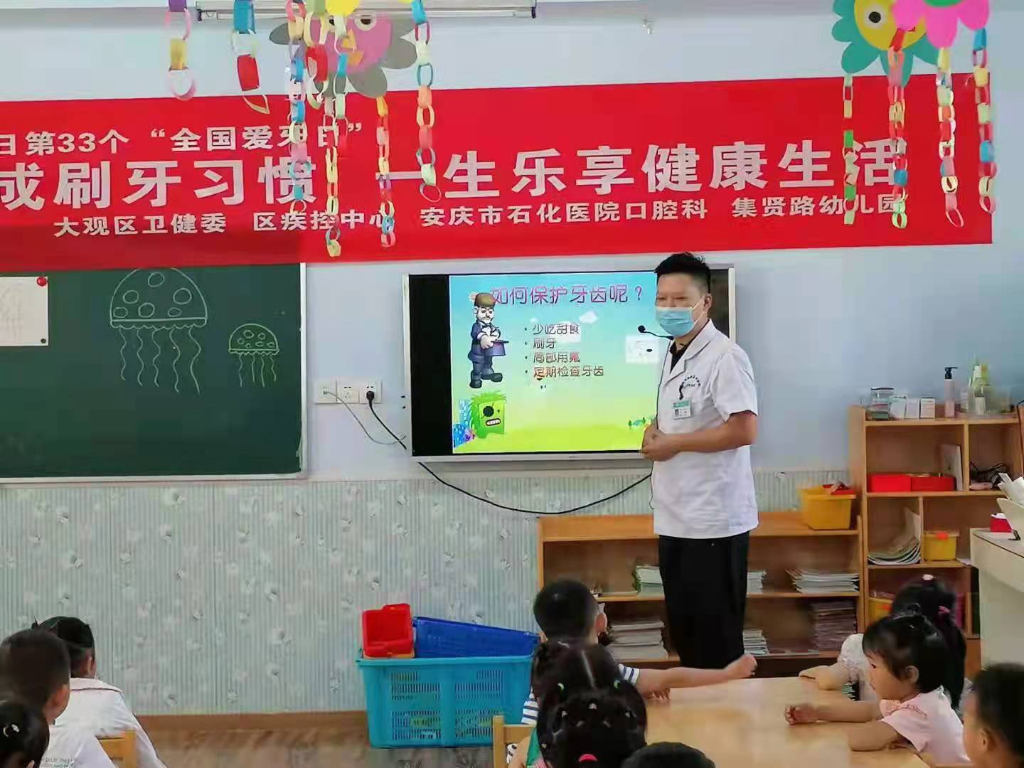今年9月20日是第33個(gè)"全國(guó)愛牙日"。為進(jìn)一步提升群眾口腔健康素養(yǎng)水平,重點(diǎn)關(guān)注兒童口腔保健,營(yíng)造有利于口腔健康的良好社會(huì)氛圍,石化醫(yī)院口腔科聯(lián)合大觀區(qū)衛(wèi)健委、大觀區(qū)疾控中心,深入集賢路幼兒園為小朋友們普及牙齒保健知識(shí)。