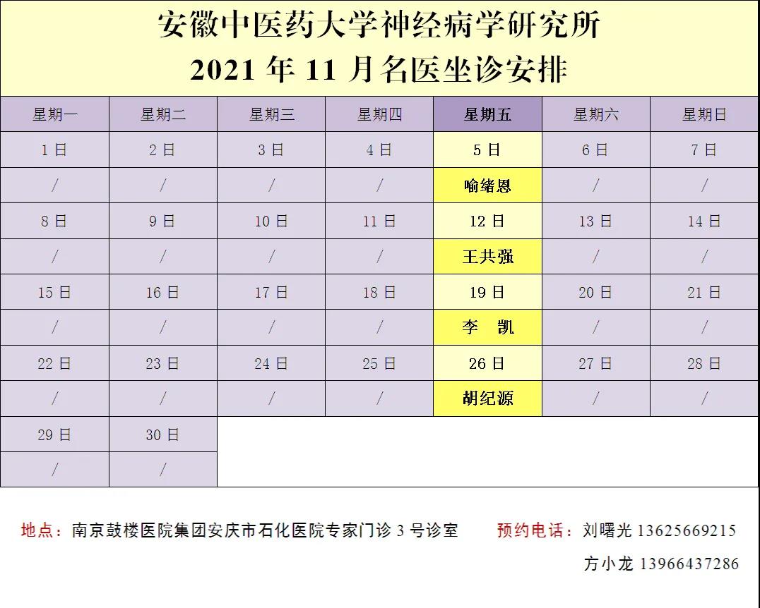2021年11月,胡紀(jì)源教授、王共強(qiáng)教授、李凱教授和喻緒恩教授都將到石化醫(yī)院坐診,機(jī)會(huì)難得,不容錯(cuò)過!