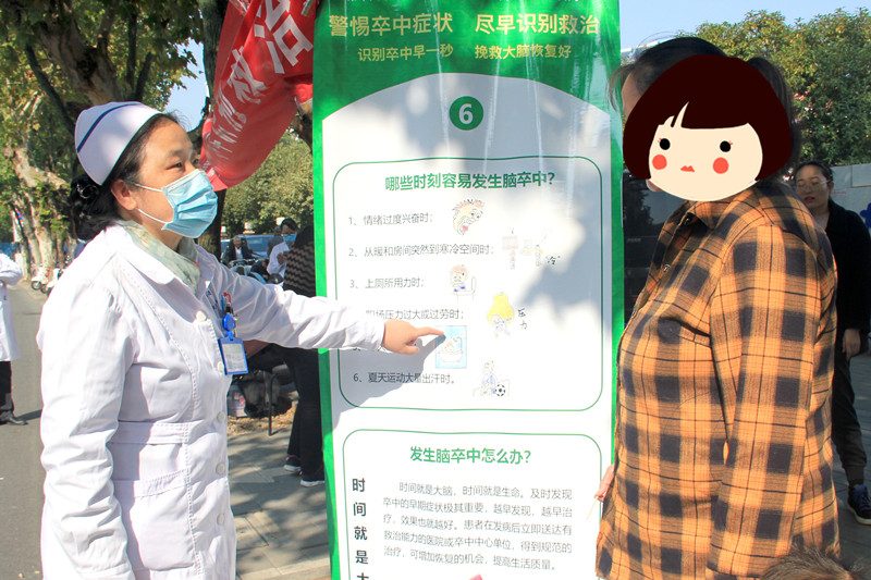 神經(jīng)內(nèi)科醫(yī)護(hù)向廣大市民和患者宣傳腦卒中的相關(guān)知識,現(xiàn)場開展疾病咨詢、健康教育,為100余位群眾免費(fèi)測量血壓和血糖,受到了群眾的一致好評。