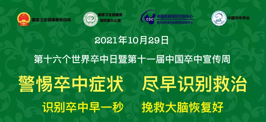 今年10月29日是第16個(gè)“世界卒中日”,以“警惕卒中癥狀,盡早識別救治”為主題,廣泛宣傳“識別卒中早一秒,挽救大腦恢復(fù)好”的理念。