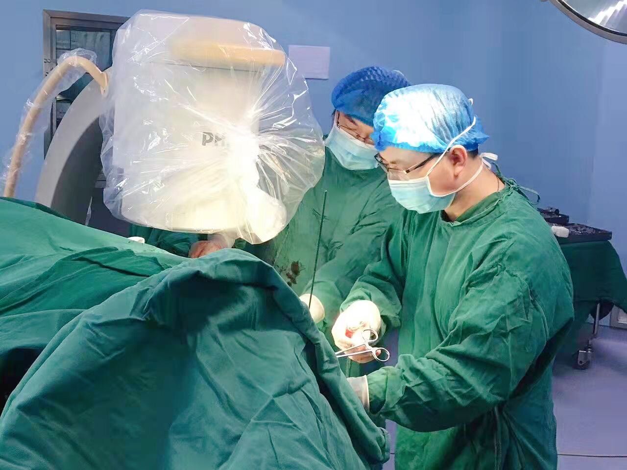 手術(shù)當(dāng)日,在麻醉科的協(xié)助下,骨科團(tuán)隊(duì)經(jīng)透視成功將廖老的左髖部牽引復(fù)位,用4個(gè)小切口順利置入PFBN固定,不到40分鐘就成功完成手術(shù)。
