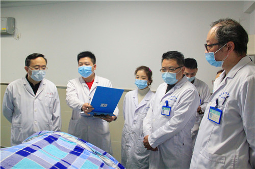 鄭東風主任與蔣亞楠醫(yī)生帶領石化醫(yī)院燒傷整形科團隊開展查房、教學工作,了解患者病情,給出指導意見。