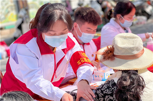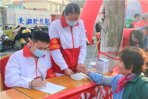 3月5日“學(xué)雷鋒日”當(dāng)天上午,在黨委青年委員、副院長操海寶的帶領(lǐng)下,醫(yī)院紅十字志愿服務(wù)隊(duì)及團(tuán)委20余名青年醫(yī)護(hù)來到石化大湖社區(qū)開展義診志愿服務(wù)活動,倡導(dǎo)科學(xué)健康生活方式。前來問詢看診的市民絡(luò)繹不絕,每一位志愿者都秉持著“奉獻(xiàn)、友愛、互助、進(jìn)步”的志愿者精神,共計(jì)為580余名市民提供健康義診服務(wù),發(fā)放疾病預(yù)防宣教材料400余份。