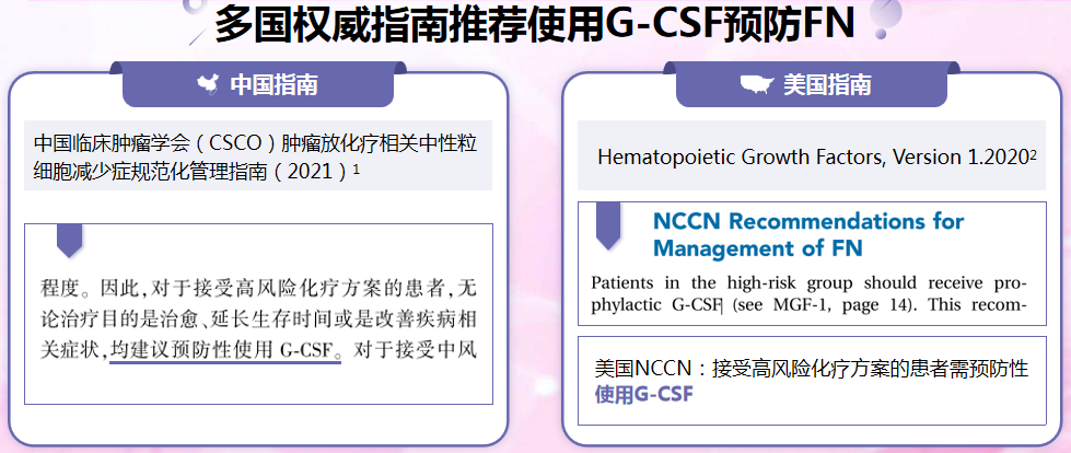 次級預(yù)防即減緩FN的加重,針對既往化療后出現(xiàn)FN或雖無發(fā)熱但出現(xiàn)嚴重的、持續(xù)時間較長的化療相關(guān)粒細胞下降的患者再次接受相同方案的化療后,可預(yù)防性地使用G-CSF。