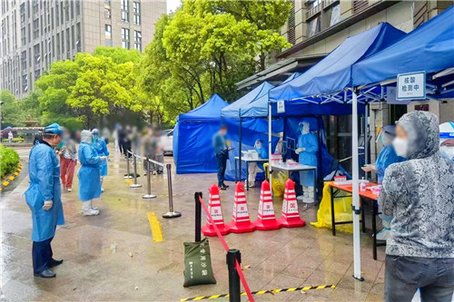 當(dāng)天,上海下著雨,氣溫較低,隊(duì)員們?cè)诜雷o(hù)服外穿著雨衣堅(jiān)持完成任務(wù)。有的隊(duì)員連續(xù)轉(zhuǎn)場(chǎng)幾個(gè)采集點(diǎn),衣服和鞋子都濕透了。