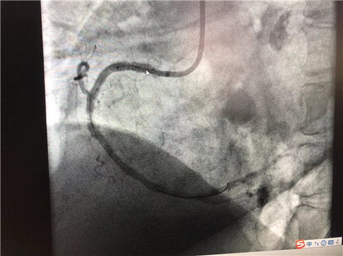 時間就是心肌,時間就是生命。導(dǎo)管室內(nèi),心血管內(nèi)科副主任徐先進(jìn)、主任助理農(nóng)彥林已然待命,病人一到,團(tuán)隊立即為其行深靜脈穿刺泵入血管活性藥物等,情況緩解后,行多體位冠狀動脈造影,確認(rèn)RCA(右冠狀動脈)近端完全閉塞。經(jīng)家屬同意,在汪念東院長的指導(dǎo)下,徐先進(jìn)、農(nóng)彥林、張星為患者行經(jīng)皮冠狀動脈球囊擴張成形術(shù)+經(jīng)外周靜脈穿刺中心靜脈置管術(shù)。術(shù)中,張奶奶再次出現(xiàn)室顫,心血管內(nèi)科團(tuán)隊臨危不亂,立即予以300焦電除顫搶救,患者竇性心律恢復(fù)。隨后,球囊擴張為其置入心臟支架,復(fù)查造影顯示血管恢復(fù)暢通,無明顯夾層,殘余狹窄不到10%。術(shù)后,張奶奶血壓偏低,轉(zhuǎn)入ICU無創(chuàng)呼吸監(jiān)護(hù),2天后轉(zhuǎn)回心血管內(nèi)科護(hù)理。