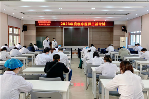 本次考試全程閉卷、線上獨立答題,內容涵蓋臨床、醫(yī)技多方面專業(yè)知識,韋寧華院長、操海寶副院長現(xiàn)場監(jiān)考。