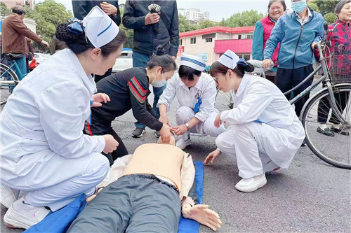 除??茖2×x診外,專家們還現(xiàn)場普及急救知識,指導(dǎo)示范心肺復(fù)蘇操作流程。市民們積極參與互動學(xué)習,“急救技能我們?nèi)巳硕荚撜莆?!感謝各位護理專家為我們老百姓普及急救知識!”