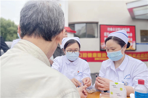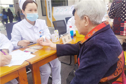 護理專家為前來咨詢的市民量血壓、測血糖,耐心解答疾病相關(guān)問題,并針對合理飲食、規(guī)范用藥、健康保健等方面進行知識宣教。