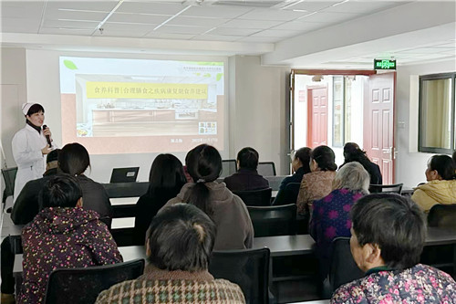 康復(fù)醫(yī)學(xué)科護(hù)士長、高級(jí)健康管理師陳志梅以《合理膳食之疾病康復(fù)期食養(yǎng)建議》為題開展講座,用通俗易懂的語言、生動(dòng)形象的圖片,向社區(qū)群眾強(qiáng)調(diào)了食養(yǎng)的重要性,詳細(xì)介紹了平衡膳食的分類、骨折康復(fù)期的營養(yǎng)補(bǔ)充以及營養(yǎng)不良的自我監(jiān)測等,大家紛紛表示受益匪淺。