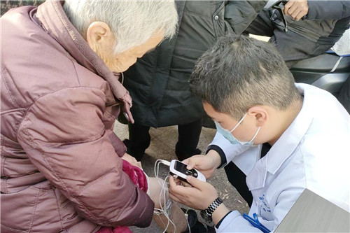 康復(fù)醫(yī)學(xué)科主治醫(yī)師徐棟、康復(fù)治療師盛子琪發(fā)揮專業(yè)特長,為居民義診義治,免費(fèi)提供中醫(yī)推拿、中頻脈沖電療等治療,耐心答疑解惑。康復(fù)醫(yī)學(xué)科主管護(hù)師卜衛(wèi)娜和護(hù)理雙主體教改班學(xué)生志愿者為居民免費(fèi)測量血壓、血糖,提醒大家養(yǎng)成健康的生活習(xí)慣。