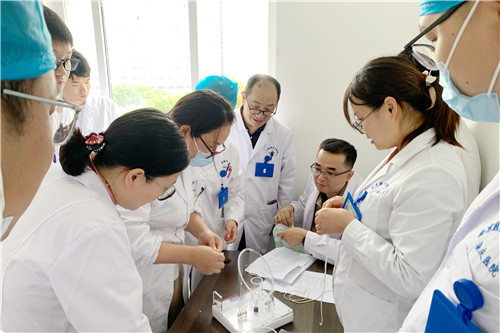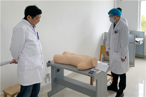 考核涵蓋心肺復(fù)蘇、胸腔穿刺、腹腔穿刺、腰椎穿刺、氣管插管、清潔換藥、外科打結(jié)等操作,由高級職稱醫(yī)師擔(dān)任評委,嚴(yán)格按照評分標(biāo)準(zhǔn),對操作規(guī)范、合理治療等方面進(jìn)行全面評估,并加以點(diǎn)評??己诉^程中,臨床醫(yī)師們展現(xiàn)出了嫻熟的臨床技能和豐富的實(shí)踐經(jīng)驗(yàn)。