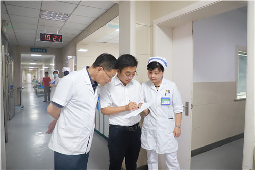 專家組一行深入病區(qū)實地考察,通過翻閱臺賬資料、考察醫(yī)務人員、查看電子病歷等方式,從設置運行、人員配備、科室管理和質量監(jiān)管等方面進行全面、細致的檢查評估,并走進老年醫(yī)學科門診、病房現場,查看科室環(huán)境和運行情況。