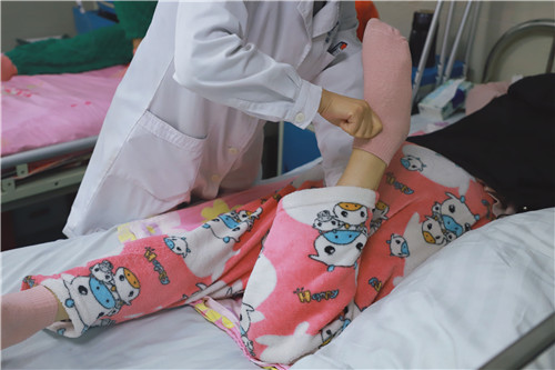 術(shù)后第3天,康復(fù)醫(yī)學(xué)科團隊隨即介入。治療師劉敏為程女士進行全面的康復(fù)評估,制定運動療法、關(guān)節(jié)松動、復(fù)合推、低頻電療法等一系列綜合康復(fù)方案,并根據(jù)康復(fù)效果動態(tài)調(diào)整治療方案。