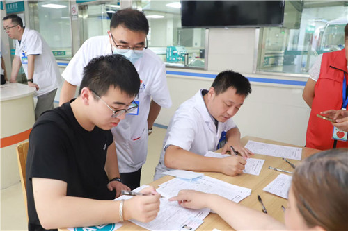 活動(dòng)現(xiàn)場(chǎng)井然有序,在工作人員的引導(dǎo)下,石醫(yī)人依次完成填表登記、體格檢查、血液化驗(yàn)、現(xiàn)場(chǎng)采血。