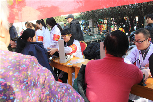 為弘揚(yáng)雷鋒精神,更好地為市民服務(wù),在“學(xué)雷鋒日”到來之際,我院團(tuán)委積極參與安慶石化團(tuán)委組織的青年志愿者活動(dòng)。2月28日上午,團(tuán)委組織8名青年醫(yī)護(hù)志愿者走進(jìn)大湖社區(qū),為居民開展健康咨詢與義診。