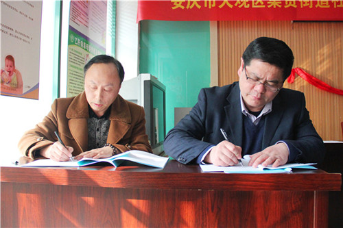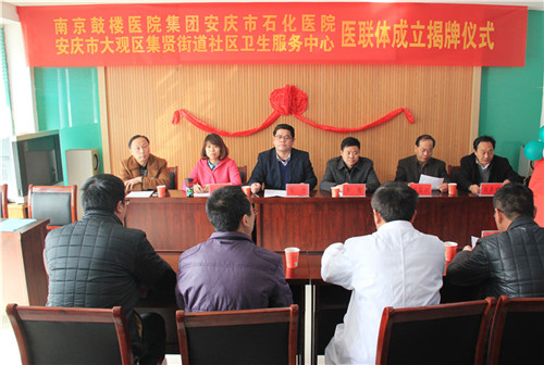 儀式由大觀區(qū)衛(wèi)計委主任汪尚斌主持,市衛(wèi)計委醫(yī)政科科長李煌、我院院長周長江、副院長花杰以及雙方醫(yī)務(wù)人員代表參加?;ń芨痹洪L與社區(qū)衛(wèi)生服務(wù)中心林慶主任代表雙方單位簽署了醫(yī)聯(lián)體實施方案協(xié)議書,隨后,由李煌科長和周長江院長共同揭牌。