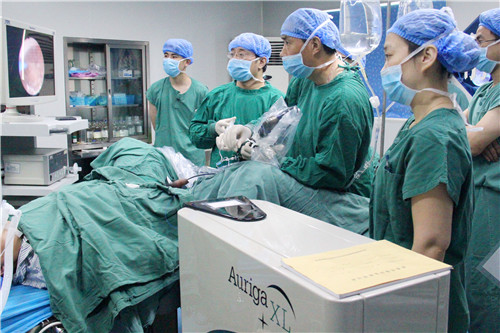我院泌尿外科周國保主任一直關(guān)注本專業(yè)微創(chuàng)治療最前沿、最有效、安全性最高的技術(shù)。輸尿管軟鏡鈥激光碎石術(shù)是泌尿外科繼藥物排石、體外沖擊波碎石、輸尿管鏡碎石術(shù)、經(jīng)皮腎鏡碎石取石術(shù)、腹腔鏡腎盂輸尿管切開取石術(shù)之后所開展的又一新技術(shù)。