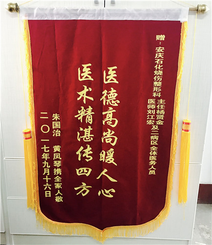 患兒傷后29天痊愈出院,家人也為燒傷整形二科全體醫(yī)護(hù)送上“醫(yī)德高尚暖人心 醫(yī)術(shù)精湛傳四方”的錦旗一面。這也是近年來我院嚴(yán)重?zé)龥_復(fù)合傷治療時(shí)間最短、臨床效果最好的病例之一。