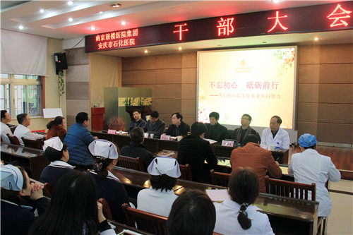 12月15日下午,我院在多功能廳召開全院干部大會,金陵藥業(yè)董事長李春敏、黨委書記凡金田、南京鼓樓醫(yī)院集團(tuán)辦公室主任魯?shù)律⒔鹆晁帢I(yè)副總裁汪洋、我院領(lǐng)導(dǎo)班子全體成員出席,醫(yī)院班組長以上人員、職工代表及部分機(jī)關(guān)員工參加。