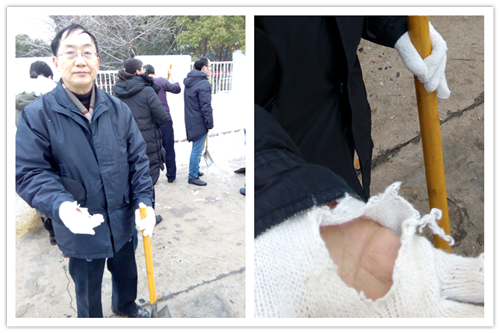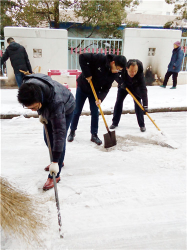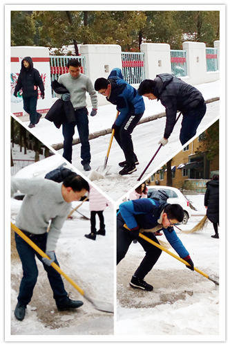 又是一夜的大雪,嚴(yán)嚴(yán)密密地將大地鋪裹上厚重的銀裝。因天寒地凍,雪塊硬如石頭,路面光滑如鏡,無人行,無車動(dòng)。1月28日早晨6:30分,為給患者、員工、市民開辟“安全無障的道路”,由干部、黨員、積極分子組成的石化醫(yī)院突擊隊(duì)又一次投入除冰掃雪的戰(zhàn)斗,鐵釬叮嚀、鐵鍬飛舞,院內(nèi)、廠區(qū)、市區(qū)德寬路留下了他們戰(zhàn)天斗地的歡快身影……