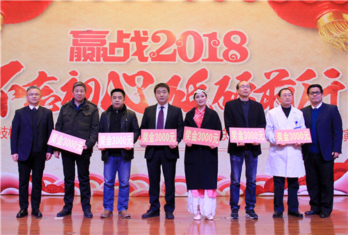 陳勝書記宣讀新工集團優(yōu)秀員工、金陵藥業(yè)優(yōu)秀管理者、優(yōu)秀員工、文明班組、市級和院級重點學科名單,以及醫(yī)院《關于表彰2017年度先進集體和先進個人的通報》,9名院領導為先進個人、集體現(xiàn)場頒獎,號召全院員工向先進個人學習,向重點科室看齊,立足崗位,創(chuàng)先爭優(yōu)。