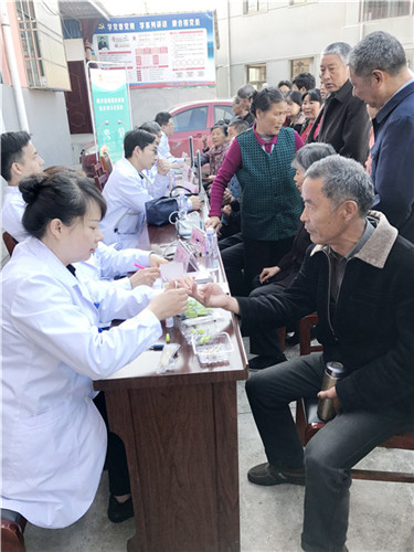 車行1個多小時到達義診現(xiàn)場,他們手腳麻利地穿上工作服迅速進入工作狀態(tài),為早已等候多時的村民量血壓、測血糖、問診、把脈、開處方,并耐心解答村民的各種健康問題,給予科學的飲食建議,讓大家及時了解自己的身體狀況及相關疾病的預防。