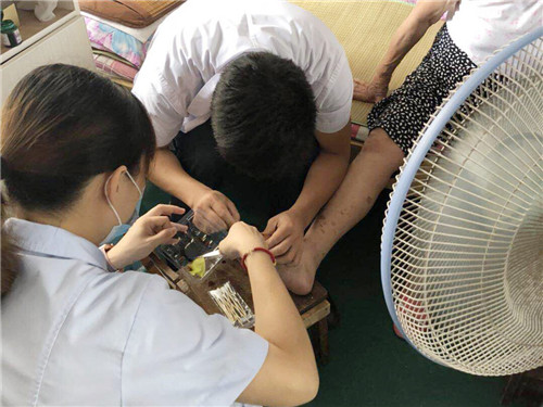 為深入落實“一點紅,紅一遍”黨支部創(chuàng)新項目,門診黨支部急診黨小組根據(jù)急診科的特點,組織黨員及科內(nèi)部分人員利用休息時間,多次義務到醫(yī)院附近的殘疾和行動不便老人家中,幫助困難群眾解決實際問題:護士何芳、朱琳等數(shù)次到大湖、菱北社區(qū)為臥床老年女性導尿;黨員何學南、入黨積極分子副護士長石嘉麗多次到旗桿新村給行動不便的80歲老太太換藥,直到傷口痊愈。一系列暖心行動獲得群眾的一致好評。