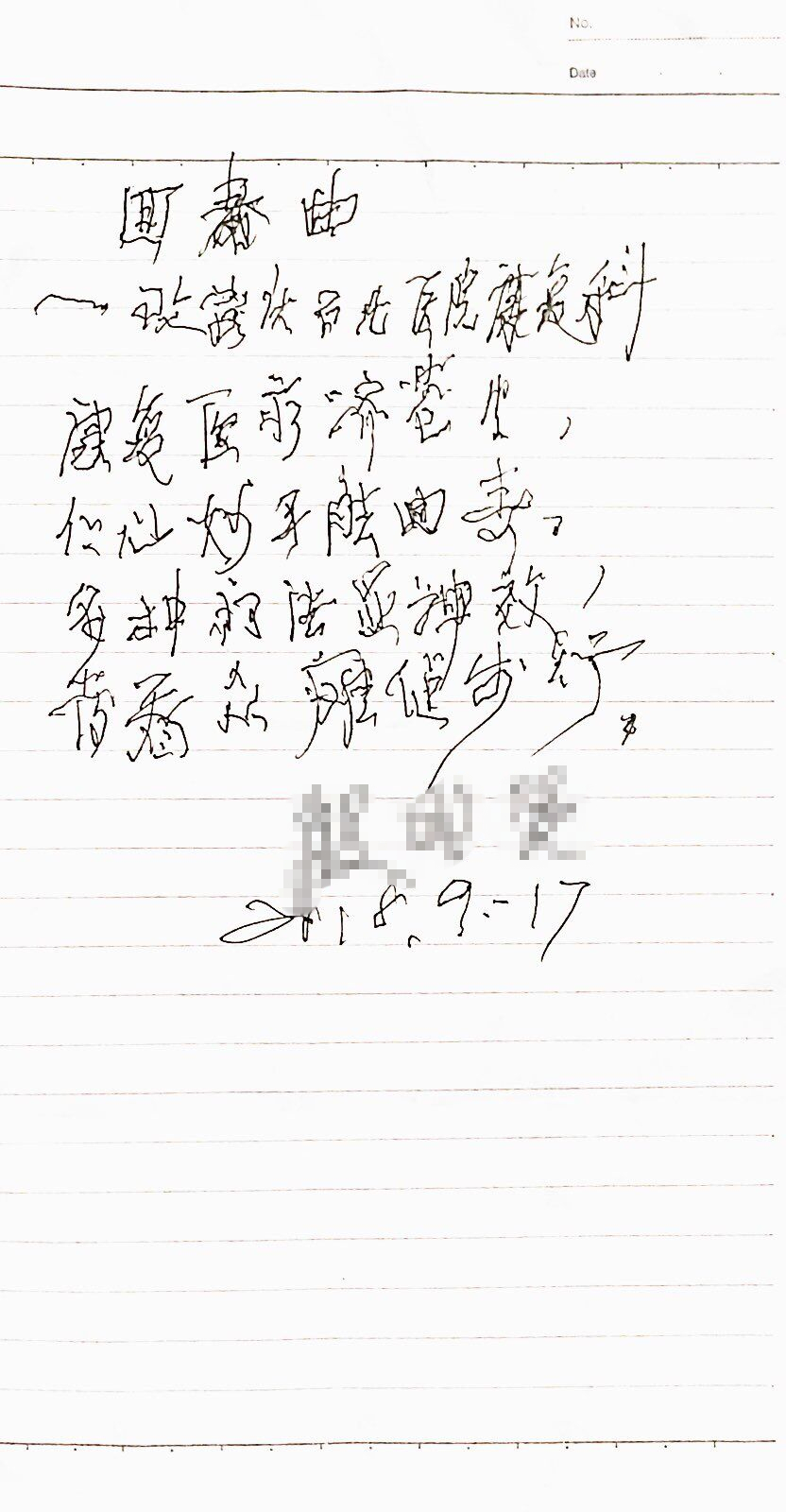 “康復(fù)醫(yī)療濟蒼生,仁心妙手能回春。多種療法顯神效,照看眾癱健步行?!?2歲的殷老在出院前親筆為我們康復(fù)科贈詩一首,這首《回春曲》是對我們最好的褒獎。