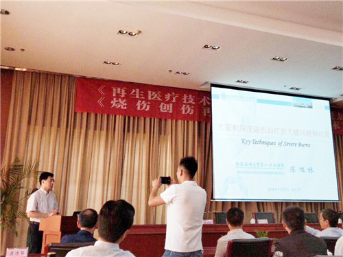 本次會(huì)議邀請了中國燒傷創(chuàng)瘍雜志副總編輯、研究員王洪生,安徽醫(yī)科大學(xué)一附院教授陳旭林,安徽醫(yī)科大學(xué)一附院教授孫業(yè)祥等專家授課,他們也對我院燒傷整形科在再生醫(yī)療技術(shù)方面的成就表示肯定。我院燒傷整形二科主任楊賢金、副主任醫(yī)師徐松濤、護(hù)士長吳清華、門診部主任韓張杰也參與授課,與來自省內(nèi)多家醫(yī)療機(jī)構(gòu)120余名醫(yī)護(hù)人員現(xiàn)場交流。