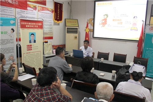 大觀區(qū)政協(xié)委員、我院內(nèi)分泌科主任王安從不同的角度、用淺顯易懂的話語為廣大患者講解糖尿病的早期診斷、篩查與防治。他從如何預(yù)防和如何控制兩個方面進行展開,希望糖尿病患者多注重平時生活,平穩(wěn)控制血糖。作為“王安委員健康咨詢工作室”領(lǐng)銜人,王安主任清楚肩上的重擔(dān)和責(zé)任,他堅信糖尿病是可防可治的,糖尿病患者也可以和正常人一樣健康生活。糖尿病的治療是一個長期的過程,他呼吁患者和家屬都積極參與進來,為自己和家人的健康共同努力。